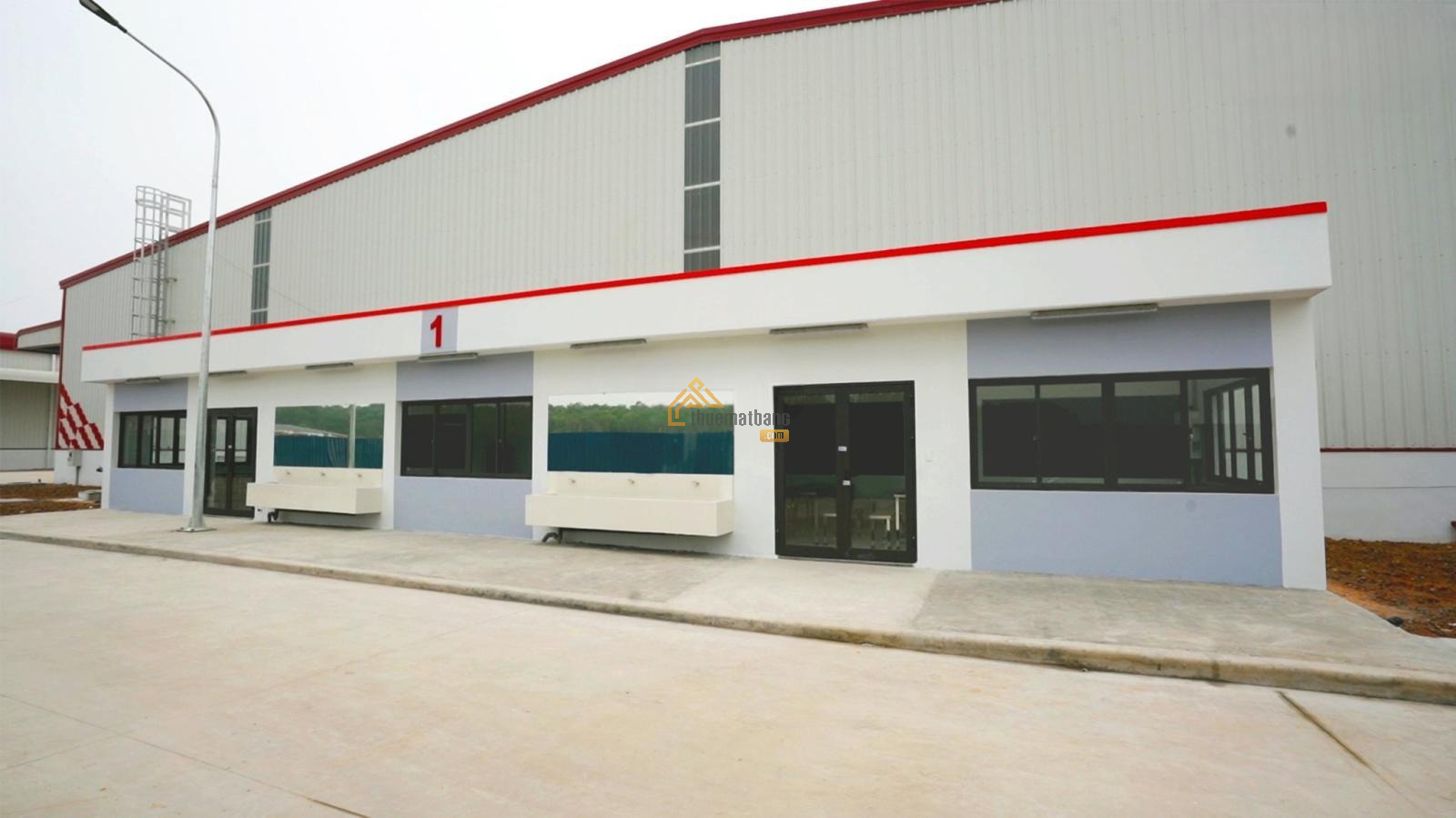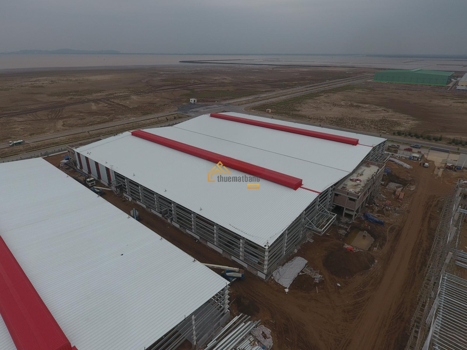 Kho xưởng dựng mới theo tiêu chuẩn EPE, khung zamin vách 9m, mái 13m, tường xây 1m, không có cột ở giữa, PCCC tự động nghiệm thu, + Bảo vệ vòng ngoài, có văn phòng, căng tin, chỗ để xe, bể xử lý nước thải, trạm điện 3 pha 2000kva, đường rộng xe container