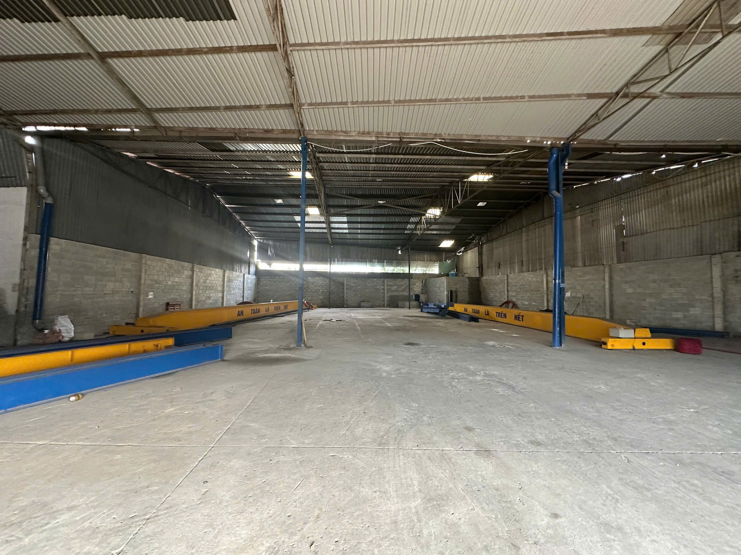 - Xưởng trệt, không lầu, không vướng cột, mặt bằng dễ bố trí máy móc