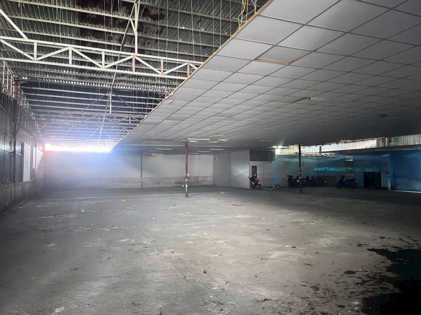 - Kết cấu trệt, mái cao, khung thép kiên cố, có cửa cuốn lớn thuận tiện xe ra vào.