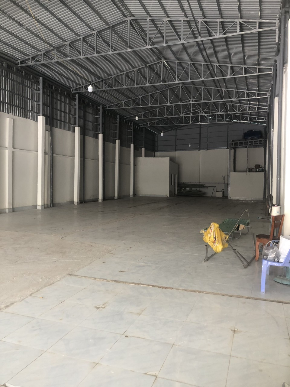 Không gian rộng rãi: Nền gạch men sạch sẽ, trần la phông thoáng mát.