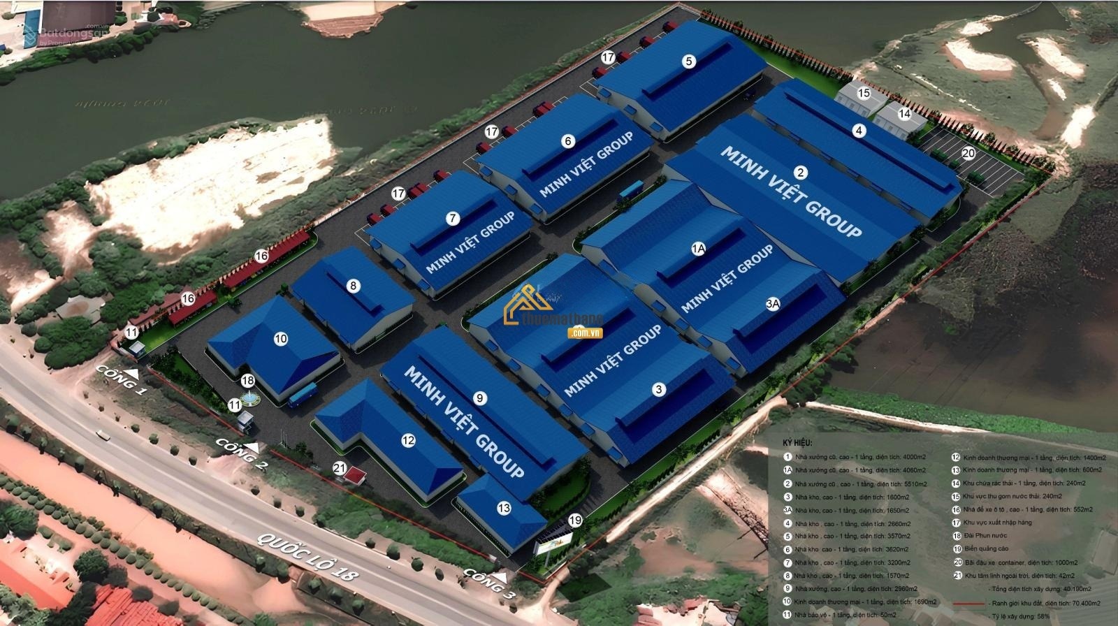 Cho thuê nhà máy 7,2ha, có 1,3ha nhà xưởng Zamil