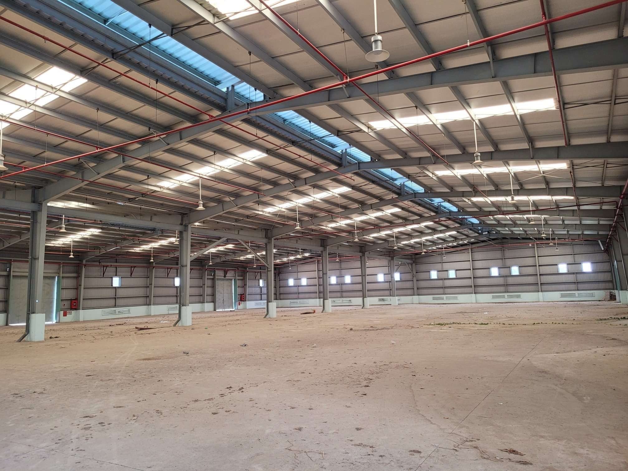 ✔️Nhà kho thiết kế theo kiến trúc công nghiệp, cơ sở hạ tầng hoàn thiện, khung Zamil cao 10m chắc chắn, đảm bảo thoáng mát.