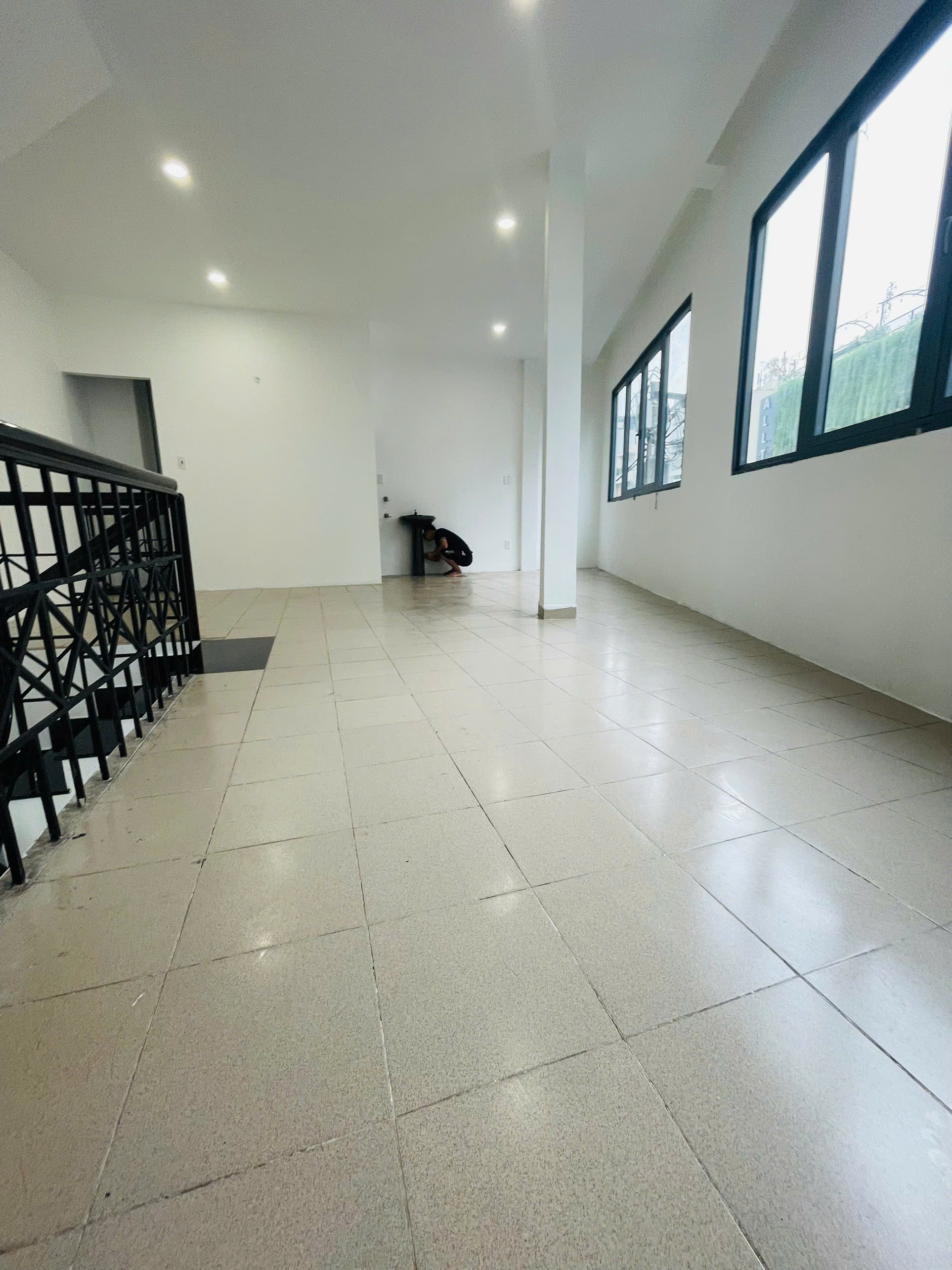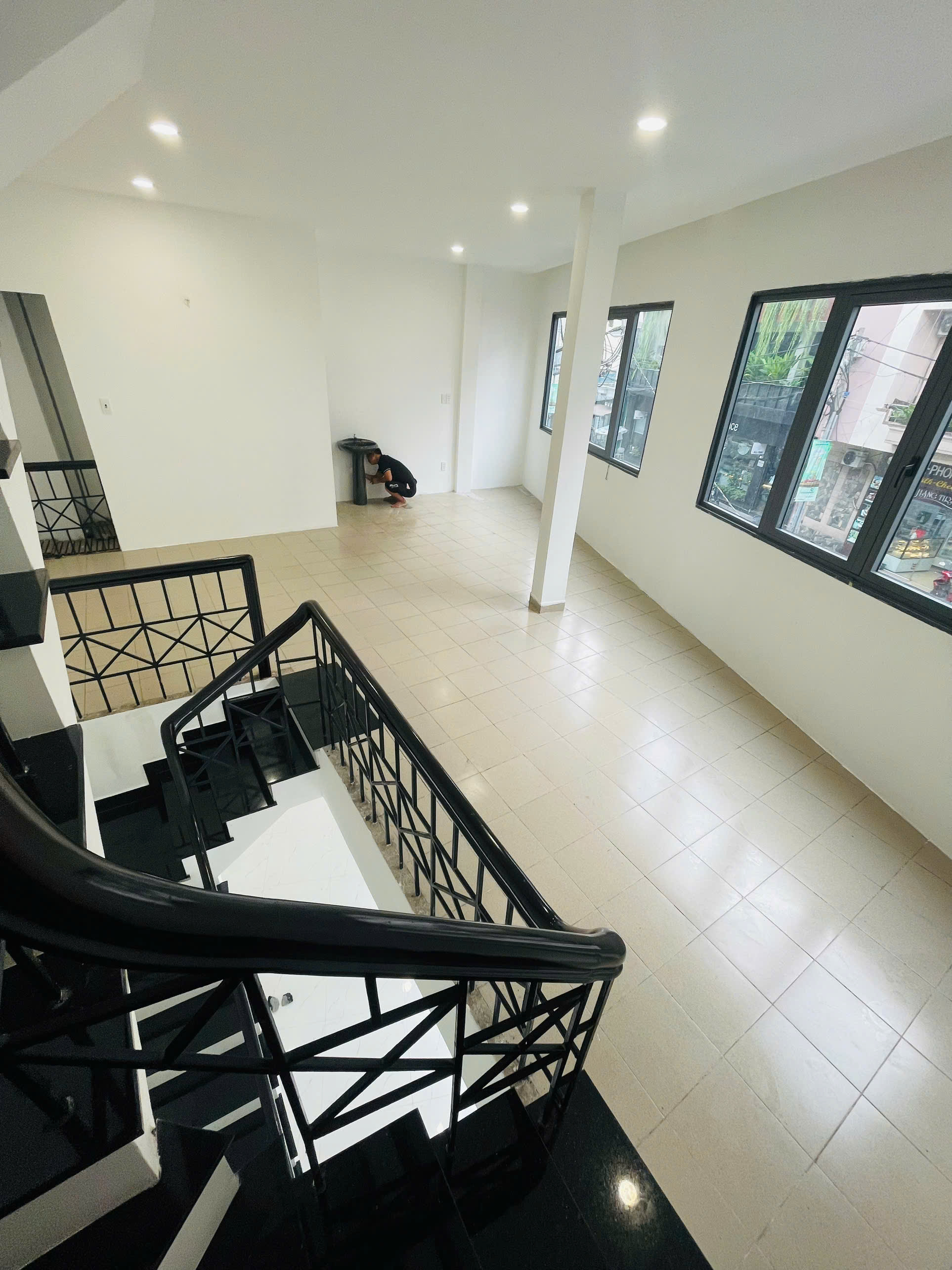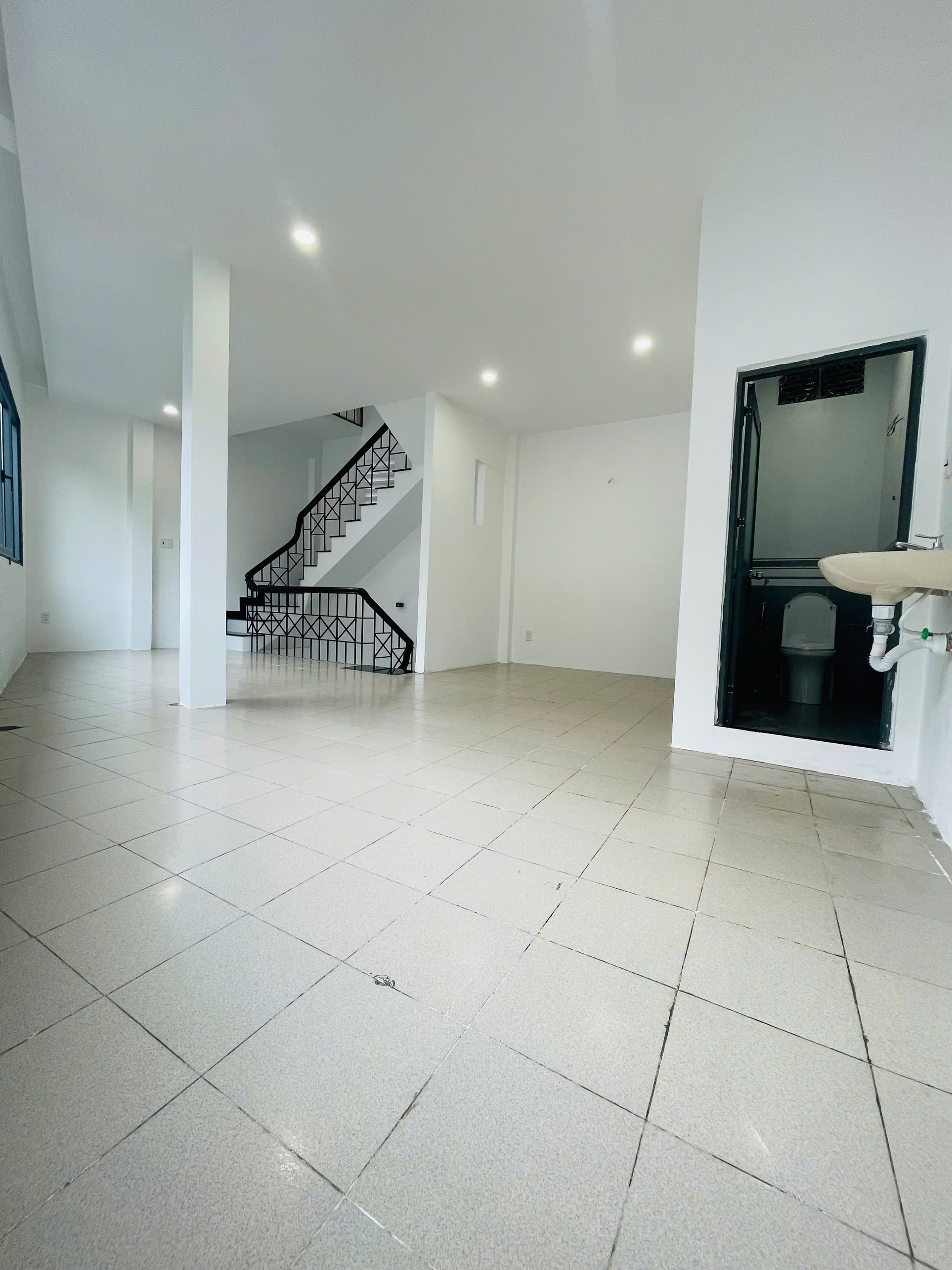 Mỗi tầng có WC riêng, cửa kính lấy sáng tự nhiên.