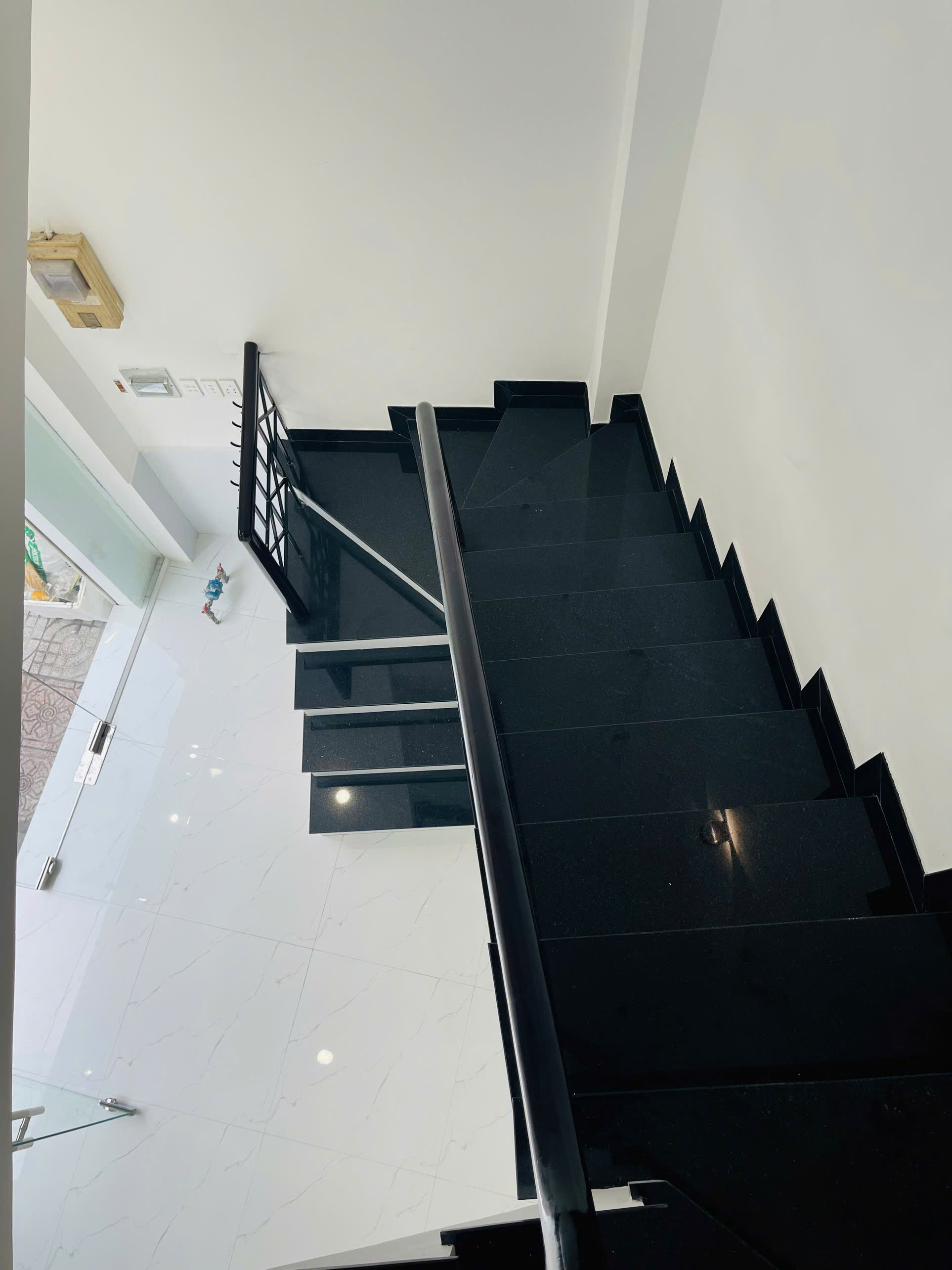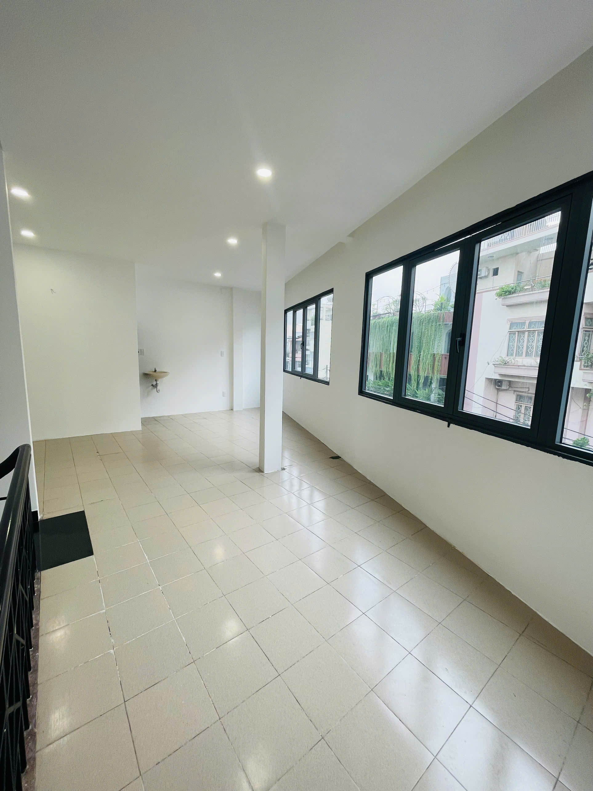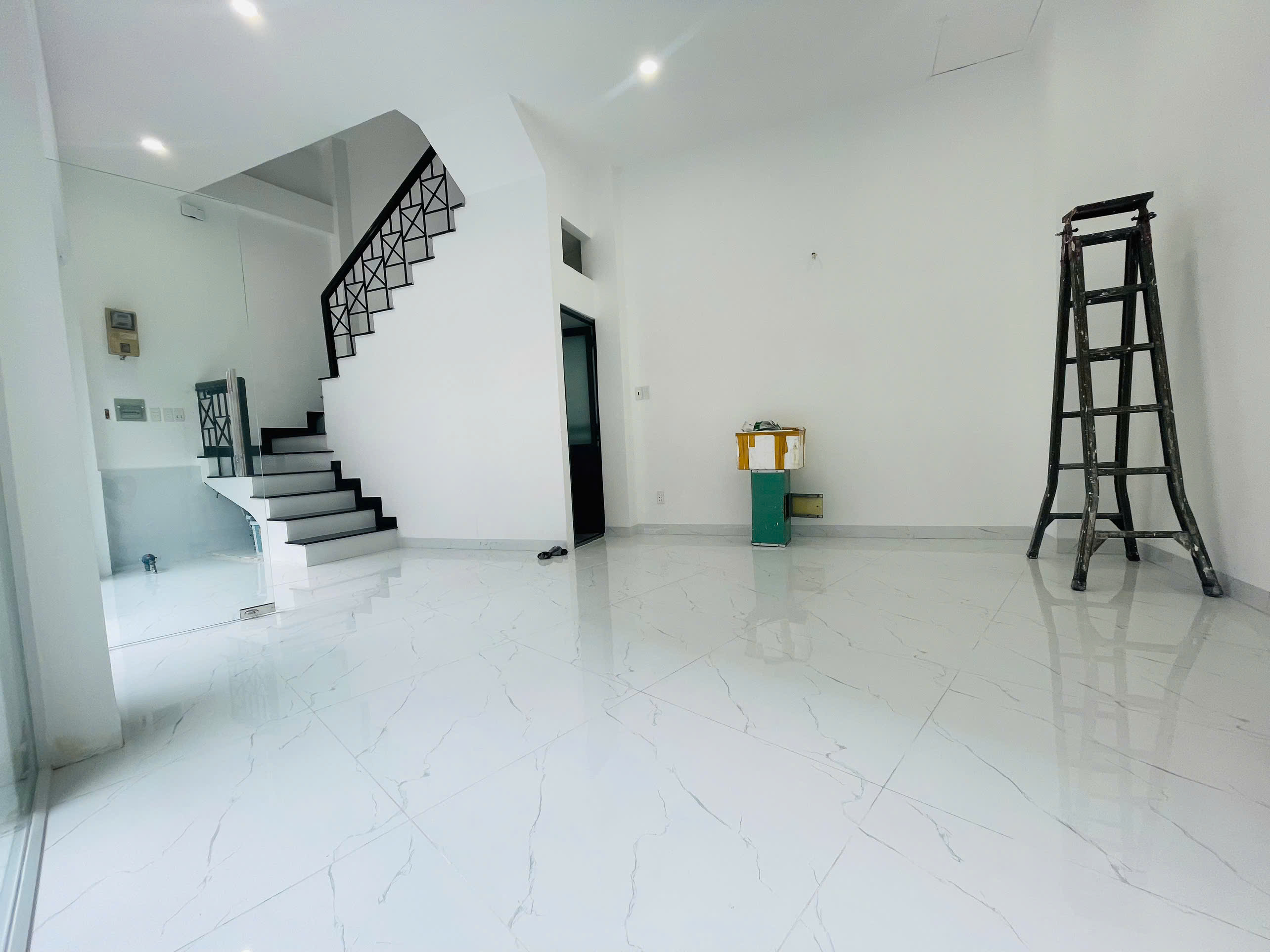 Nhà mới, hiện trạng đẹp, sàn lát gạch cao cấp, cầu thang giữa dễ phân chia tầng.