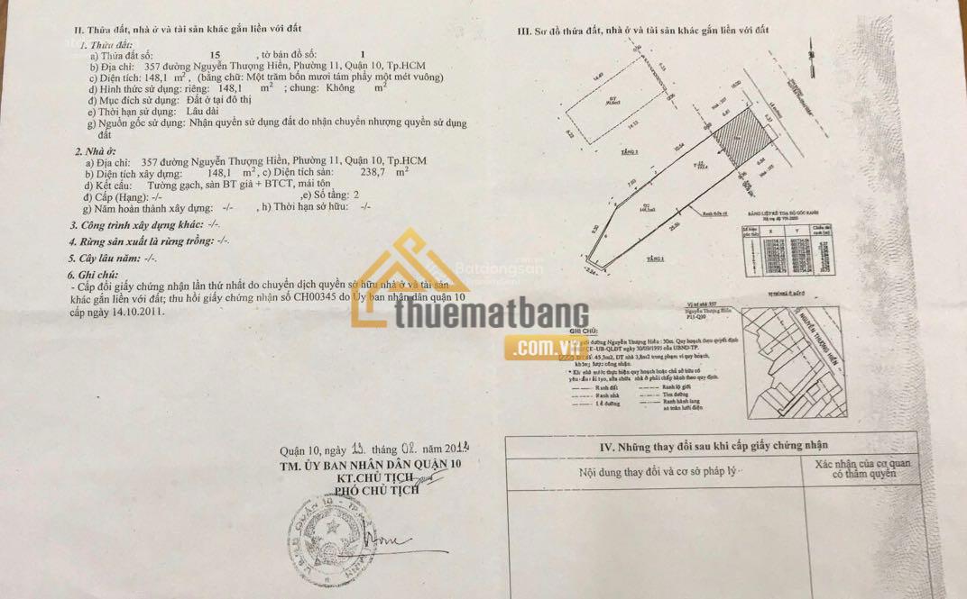 Cho thuê nhà 357 Nguyễn Thượng Hiền, phường 11, quận 10, Hồ Chí Minh